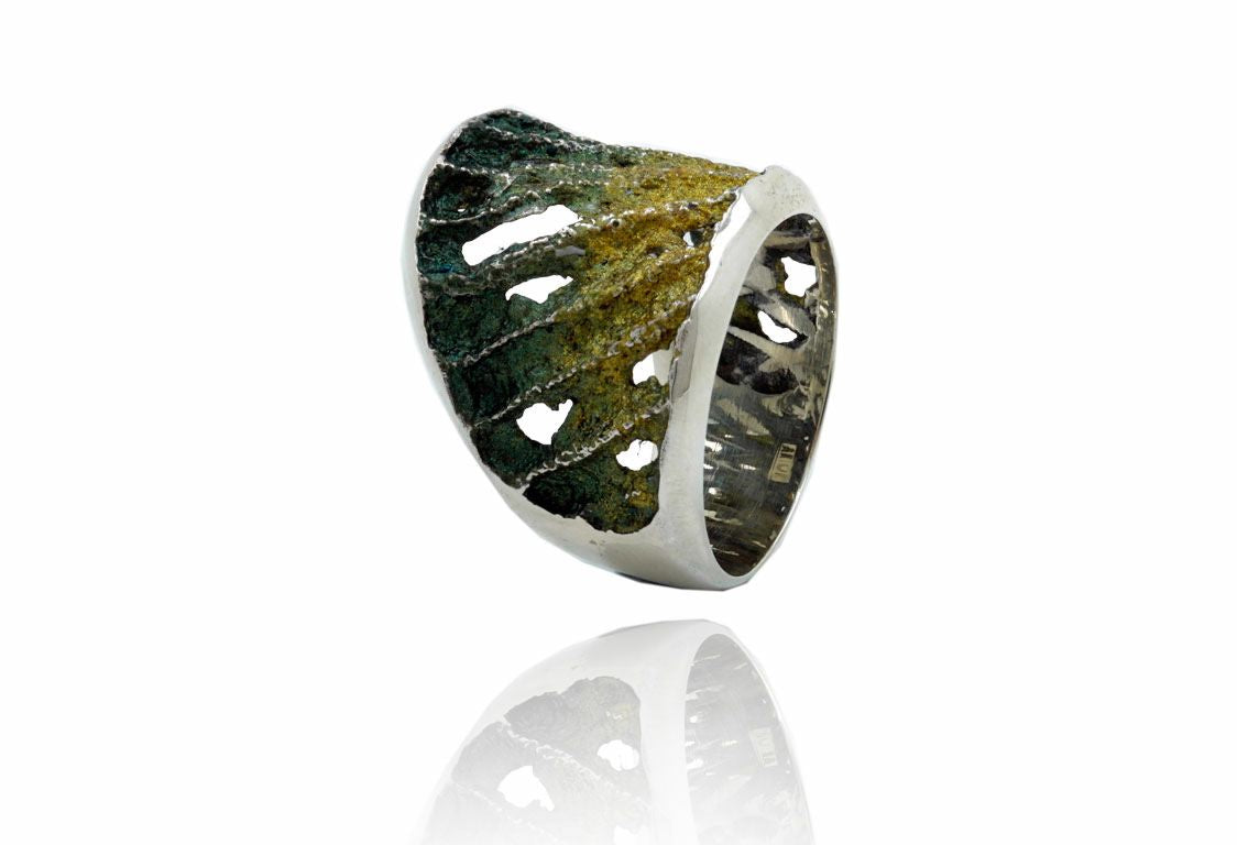 La colección PIGMENTOS es el resultado de un arduo trabajo de investigación, del que no desvelan el secreto… Combinando el modelaje en plata 925 con la técnica de esmalte al fuego y la aplicación de pigmentos con pincel se han conseguido unos increíbles colores y formas que podemos reconocer en la naturaleza. Estas piezas están elaboradas de manera totalmente artesanal, por lo que cada pieza es diferente. El resultado es espectacular: Una joya única y diferente.